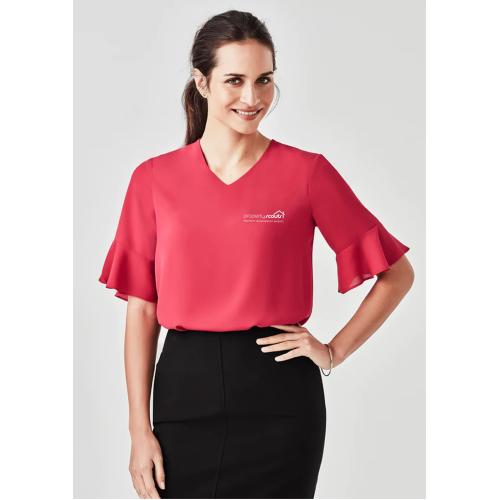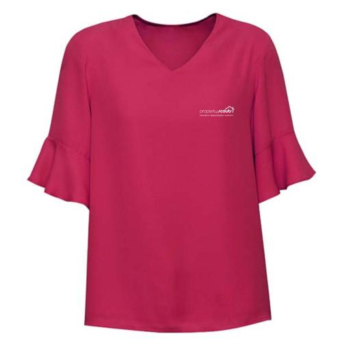 Womens Aria Fluted Sleeve Blouse - RB966LS with Property Scouts logo embroidered